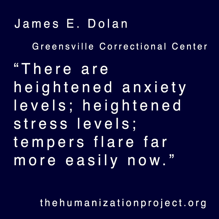 * Tensions are rising. People are scared–which does not translate very humanely in prisons–scared people in prison tend to act out violently.